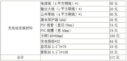 假設(shè)購買的是32路智能充電站,那么其價格在2000元左右,其附屬材料所需要的價格大約在600元左右。具體材料及價格可以參照下表格。再加上些瑣碎的費用,預(yù)計臺智能小區(qū)充電站的所有費用在3000元左右,這是不含安裝費用的價格,由于具體的每個品P、地區(qū)的政策都不太樣,這里將不再列舉安裝費用。